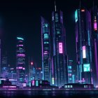 The image features a vibrant LEGO cityscape with colorful towers and bustling streets, illuminated under a starry sky, showcasing a futuristic urban environment filled with LEGO figures.
