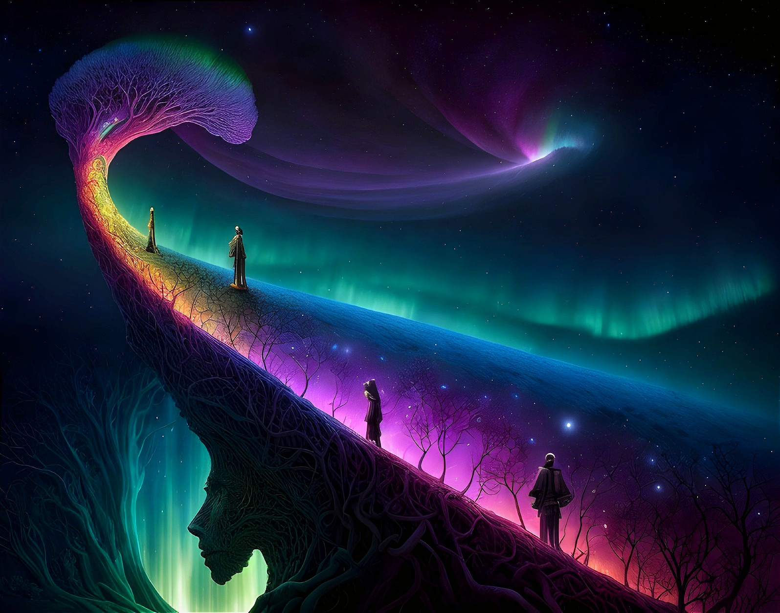 Explore a surreal world where nature intertwines with cosmic elements through the intricate and imaginative artworks of various talented artists known for their unique and dreamlike creations.