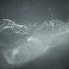 A graceful dancer in a flowing white dress moves amid shimmering raindrops, creating a magical, ethereal atmosphere. The scene is illuminated with soft light, enhancing the sense of movement and fluidity.