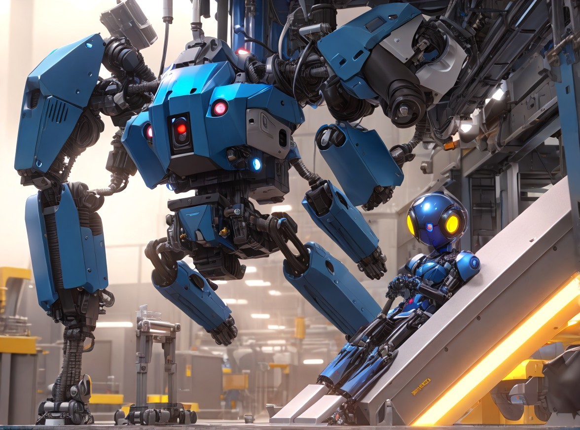 Futuristic Robots Interacting in High-Tech Facility