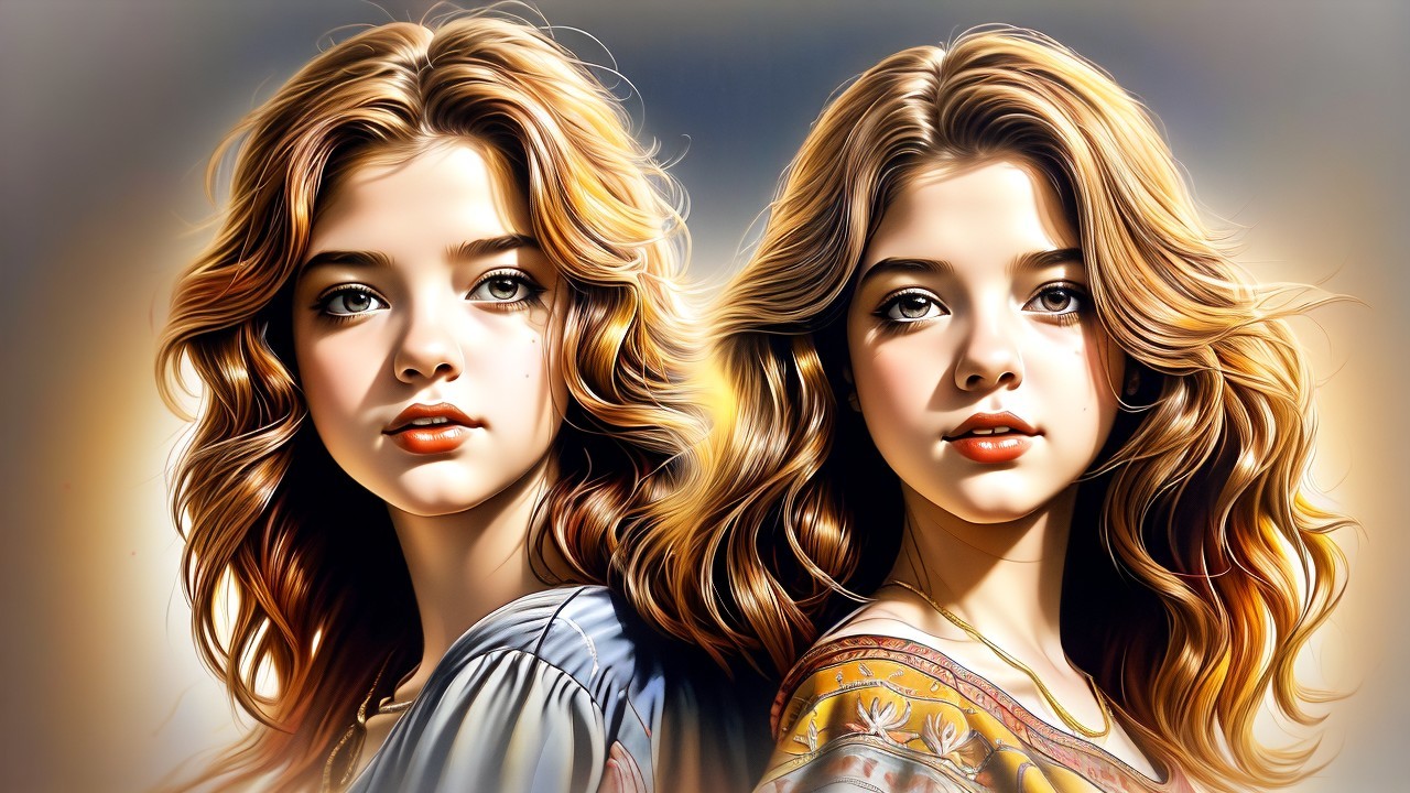 The image features a young girl with long, wavy, reddish-brown hair, looking directly at the viewer with expressive eyes. The background showcases vibrant autumn leaves, enhancing the warm atmosphere.