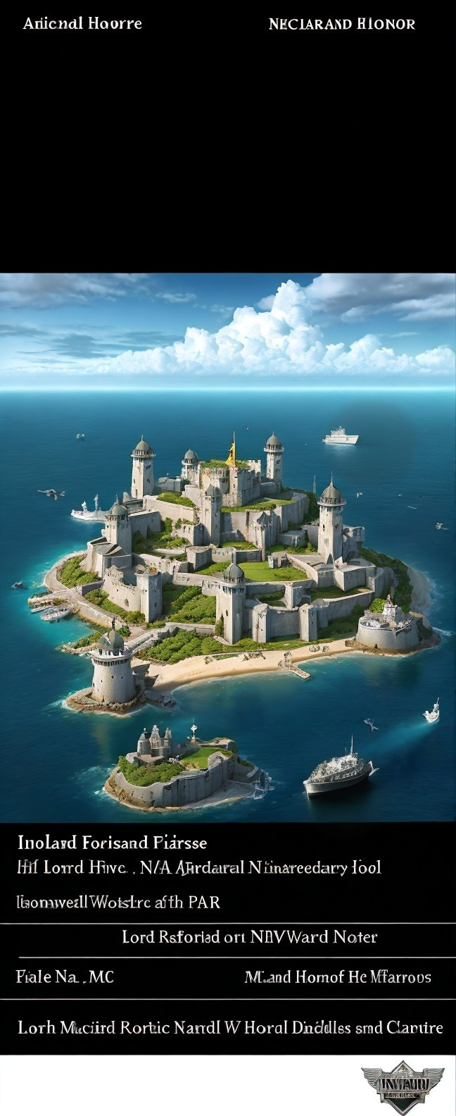 A majestic, fantasy-style castle on an island surrounded by the sea with ships nearby, under a clear blue sky.