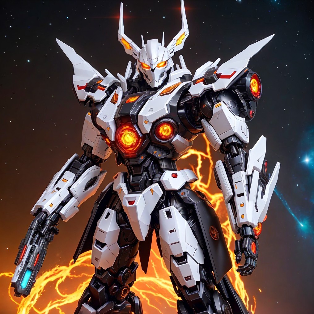 Prompt: "Elevate the image to an even higher level by integrating galaxy-inspired designs and incorporating the concept of a god-level entity. In addition to the fusion of a dragon's grace, Mecha's mechanical intricacies, the Grim Reaper's dark aesthetic, the fiery essence of a Phoenix, the intense energy of Ultra Instinct, cosmic radiance from stars, and the iconic features of Ghost Rider, introduce captivating galaxy-themed elements. Infuse the design with swirling galaxies, cosmic dust, and celestial patterns. Furthermore, implement the concept of a god-level entity, emphasizing divinity through majestic details and symbolic representations. Ensure symmetrical balance in the composition and harmonize these diverse elements to create an awe-inspiring and intricate masterpiece."