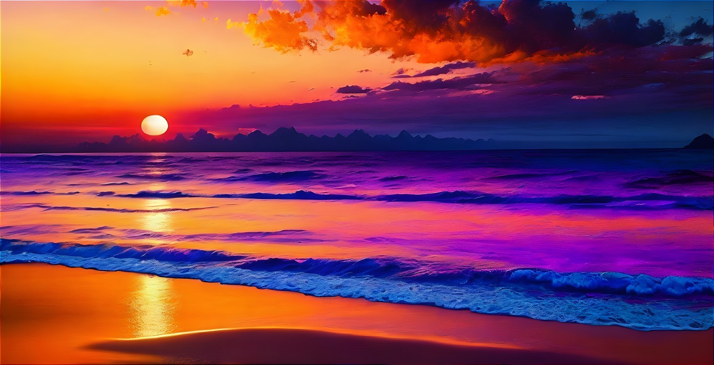 Prompt: "Oil on canvas, wide angle landscape view, a wonderful twlight over the immense ocean at Tahiti. Glowing with vibrant hues, glowing with vibrant hues, sky transitioning from warm orange to deep purple. Perfect composition. By Peter Paul Rubens. William Turner."