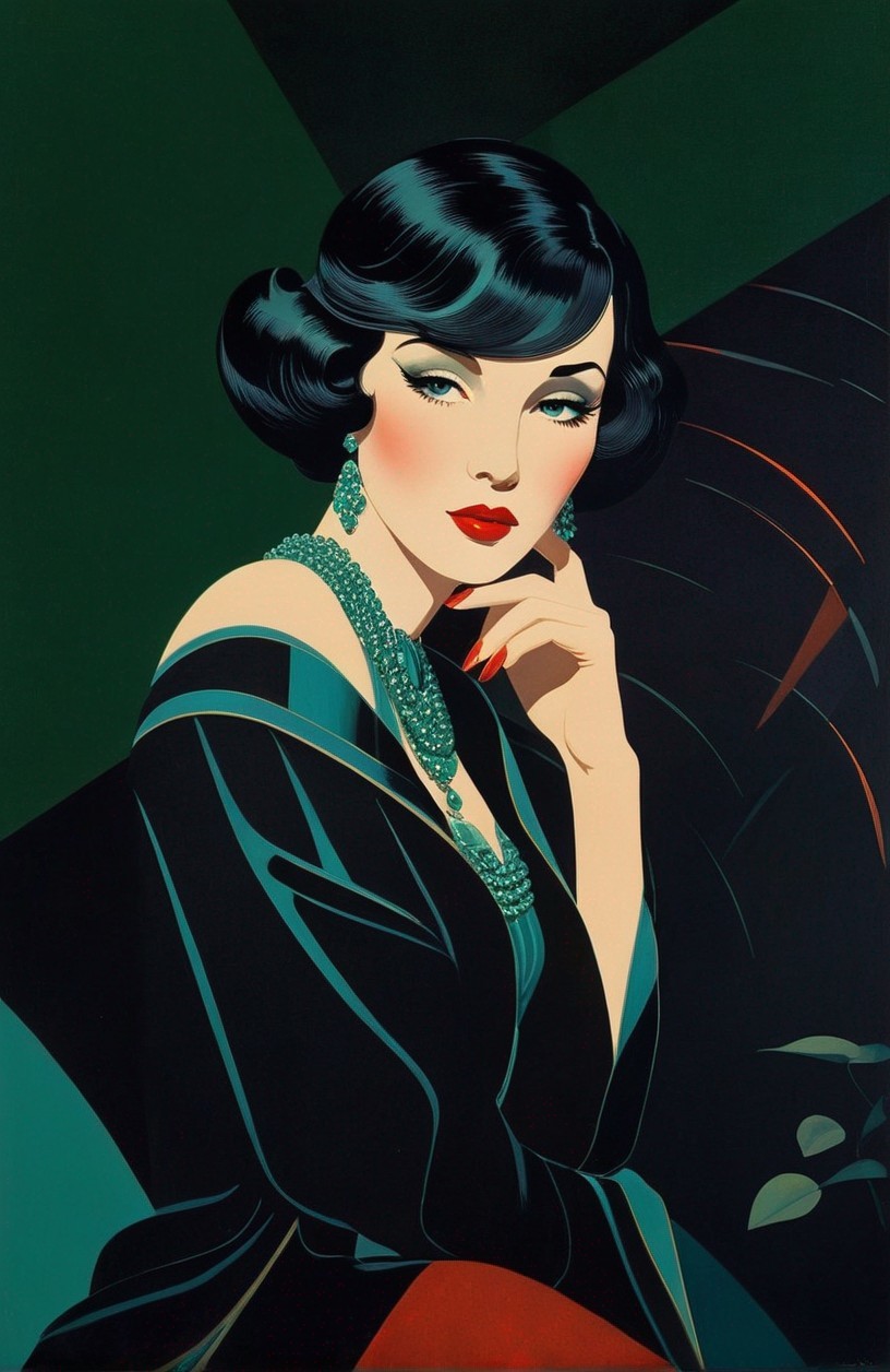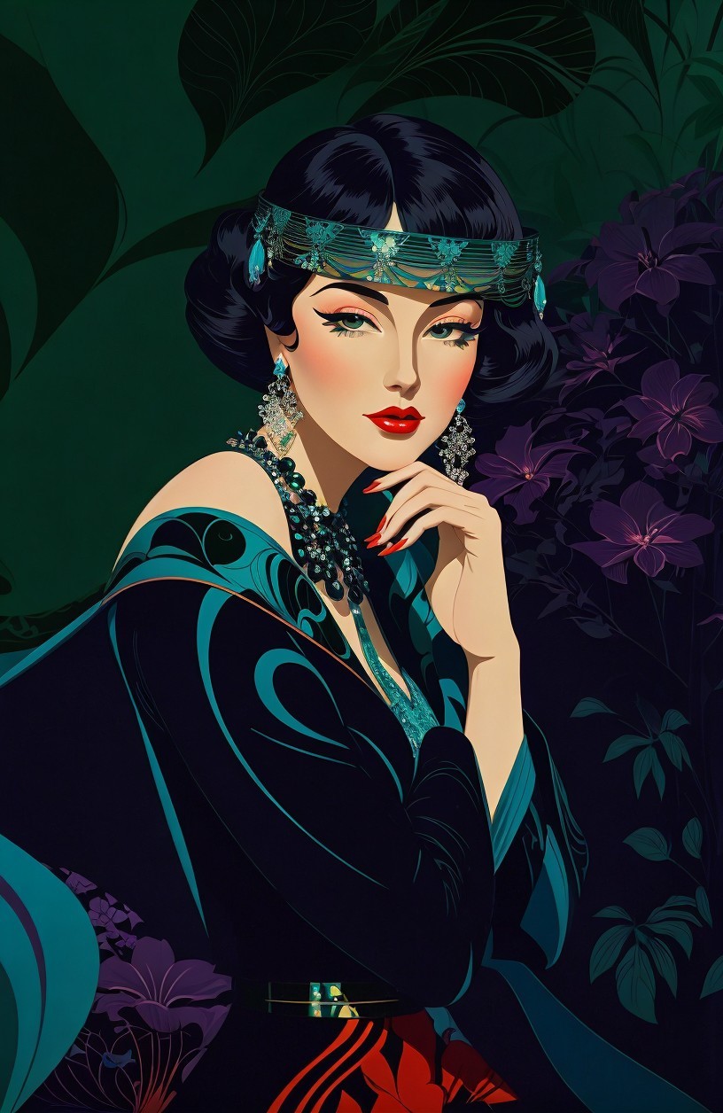 An illustration of a woman with a feather-like headdress in earthy tones, capturing an ethereal and graceful aura.
