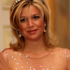 A elegant woman wearing a sparkling tiara, adorned with a sophisticated necklace and earrings. Her attire exudes grace, complemented by a soft hairstyle and a refined expression.