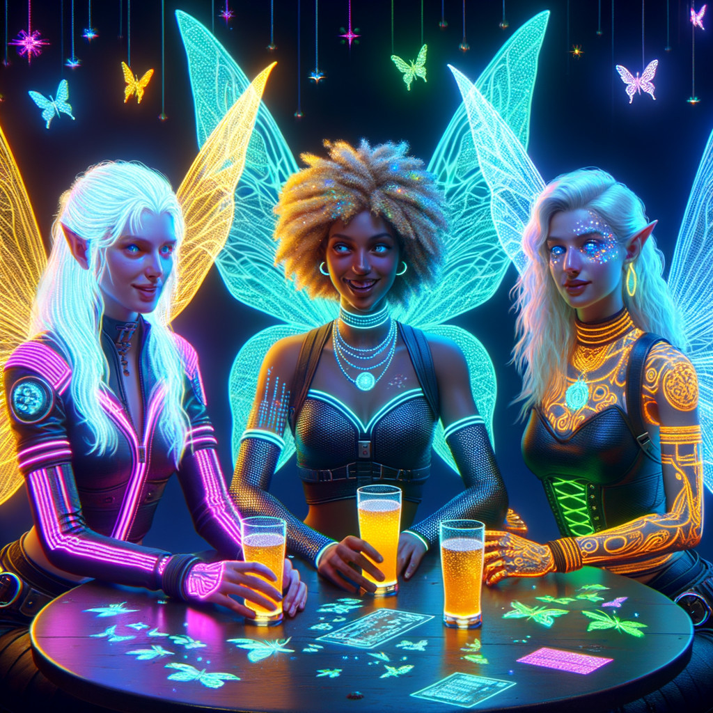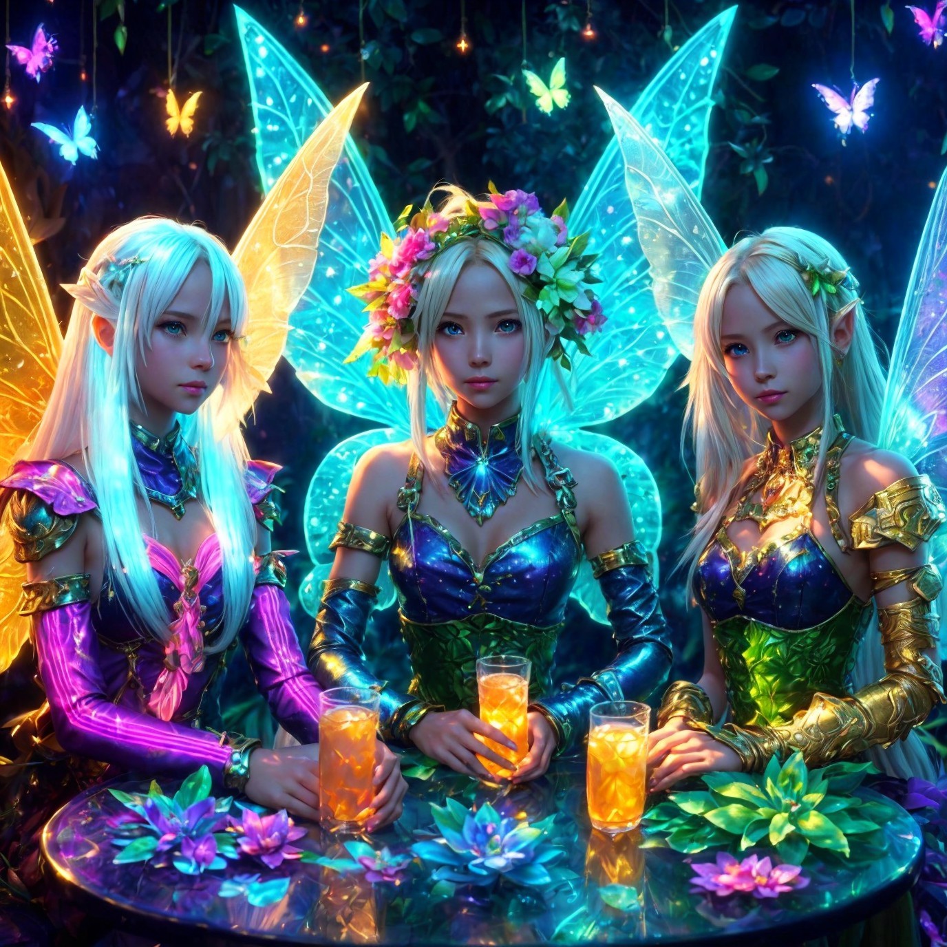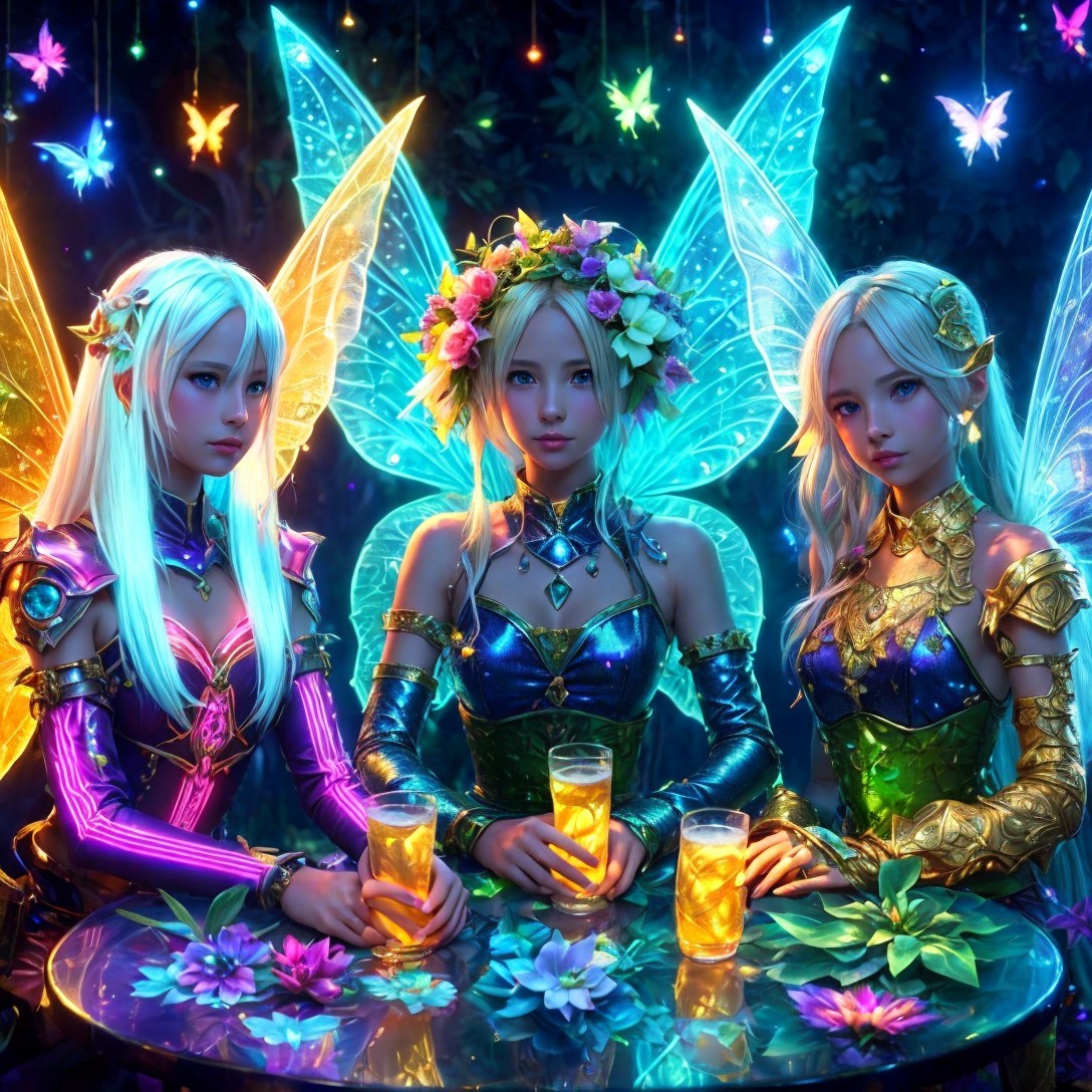 Fairy Figures at a Vibrant Flower-Adorned Table