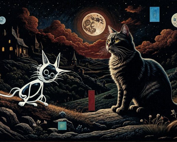 An abstract urban scene filled with diverse figures moving through a vibrant, surreal landscape. Bold colors and striking patterns create an atmosphere of intrigue and mystery.