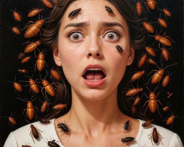 A woman in a colorful dress stands by the sea, her long hair and ribbons flowing in the breeze.