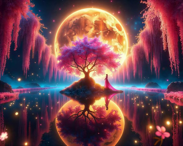 A mystical scene features a young woman in elaborate, flowing attire, gently reaching toward a colorful, fantastical bird. Swirling clouds create an ethereal backdrop, enhancing the enchantment.
