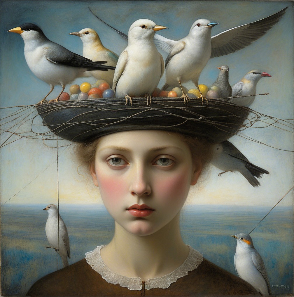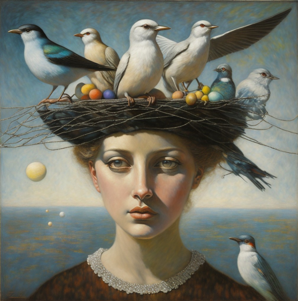 . Art by Andrew Wyeth, Erin Hanson, Klimt, CE brock, H. R. Millar, Dee Nickerson, Arthur Rackham. 3d, extremely detailed, beautiful, watercolor and ink, mixed media, Best quality, Very high definition, super clear resolution, cinematic, intricate, fantastic view, beautiful, dynamic lighting, high definition, hdr *Random prompt award winning Max Ernst ultra detailed, 4K 3D, Texture