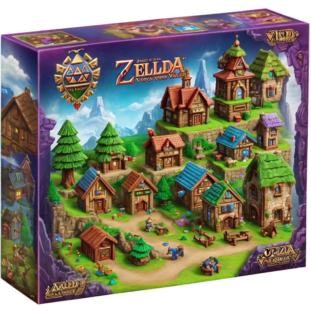 A miniature fantasy village with charming houses, lush greenery, cobblestone pathways, and glowing lanterns.