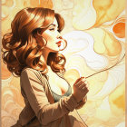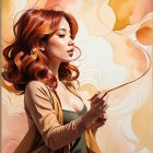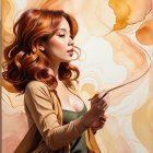 Playful female portraiture, vibrant, whimsical, intricate doodle-style linework, dynamic lighting casting shadows, large expressive shapes in metallic-honey, emulsion lifts, liquid, stylized wavery watercolor textures, overxposed, dreamy warm-toned palette, color scheme of ochre gradient colors of kale and dark-beige, gold-yellow, rust, burgundy, light-grey, light- black, warped handmade sketch-art aesthetic, resembling a hand-drawn comic book, prudish, wavery, micro-pen linework, thin and tall details, catenaries, zentangle, detailed coherent outlines by Tami Bone, earth tones, stacked-up perspective, quilling, erratic hatching, finicky, side view upper body portrait with swirling and floating elements, bold perpendicular contour lines, indiecore merged with 1970's european adult comic book art, 3D watercolor doodle illustration, UHD resolution, HDR for vivid colors, depth of field, texture mapping enhancing depth and scale, rounded and playful shapes, textured paper effect, otherworldly flair, mip-mapping, serene blotting quill pen used for embossed hues by Jackson Pollock, warm 3 point lighting, visible textures, stylized woodblock print by Overton Loyd, hatching, ink and a scratching style, chiseled, plasticity 1.2, sgrafitto style, anthropomorphized, weird, chibli, custom_loss: edge, mental, strict, asymmetrical composition with flowing light, slightly warped, parallax occlusion, foreground with a phong shading of 1.4, abstract brushstroke art, asymmetrical elements, warm coloring, retro-futurism and touch of american gothic, emphasizing shadows and highlights, tousled, delicate tones in a indiecore style, ultra detailed, crisp quality, magical light, filled dreamy,
