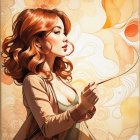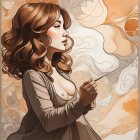 Playful female portraiture, vibrant, whimsical, intricate doodle-style linework, dynamic lighting casting shadows, large expressive shapes, wavery watercolor textures, dreamy warm-toned palette, warped handmade sketch-art aesthetic, resembling a hand-drawn comic book, detailed coherent outlines by Tami Bone, earth tones, erratic hatching, finicky, side view upper body portrait with swirling and floating elements, bold perpendicular contour lines, 3D watercolor doodle illustration, UHD resolution, HDR for vivid colors, depth of field, texture mapping enhancing depth and scale, rounded and playful shapes, textured paper effect, otherworldly flair, mip-mapping, serene blotting quill pen used for embossed hues by Jackson Pollock, warm 3 point lighting, visible textures, stylized woodblock print by Overton Loyd, hatching, ink and a scratching style, chiseled, plasticity 1.2, sgrafitto style, anthropomorphized, weird, chibli, custom_loss: edge, mental, strict, asymmetrical composition with flowing light, slightly warped, parallax occlusion, foreground with a phong shading of 1.4, abstract brushstroke art, asymmetrical elements, warm coloring, retro-futurism and touch of american gothic, emphasizing shadows and highlights, tousled, delicate tones in a indiecore style,