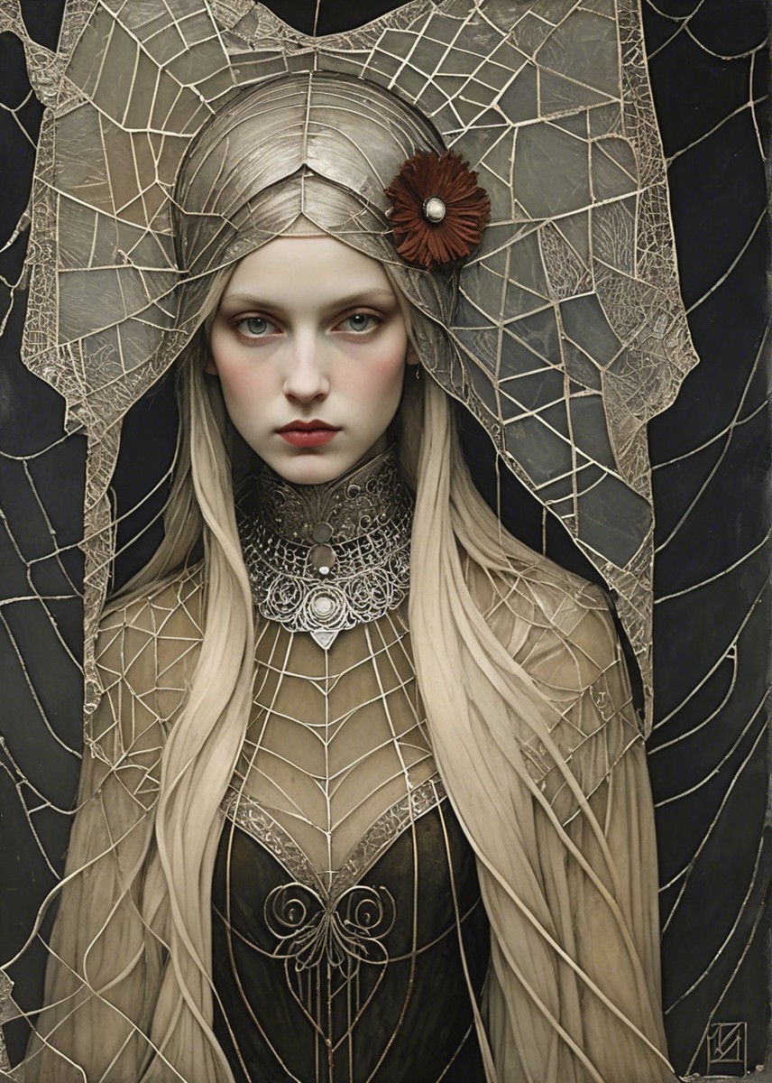 view shot zof a beautiful abrasive of the (cosmic magical mystical winter queen snowflake Queen Anne lace splendor:1.3), by (Arthur Rackham and Edward Deakin, Michael Parkes:0.8), (Tempera and depiction:0.8), 16:9, (painting: