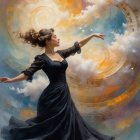 Majestic Bird with Blue Body and Golden Wing Artwork Soldiers Mourning at Makeshift Memorial Under Trees Iridescent Hummingbird Perched in Golden Background Watercolor Scene of Silhouetted Figures in Nature Fantastically Dressed Characters in a Mystical Forest Woman with Red Hair in Turquoise Dress Dancing in Rain Green Hot Air Balloons in a Blue Sky with Clouds Watercolor Scene of Woman with Balloons and Bouquet Young Woman Dancing in Pink Gown Among Poppies