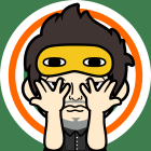 The image features a stylized cartoon character with spiky hai, wearing a yellow eye mask. He playfully gestures with both hands, set against a vibrant circular background.