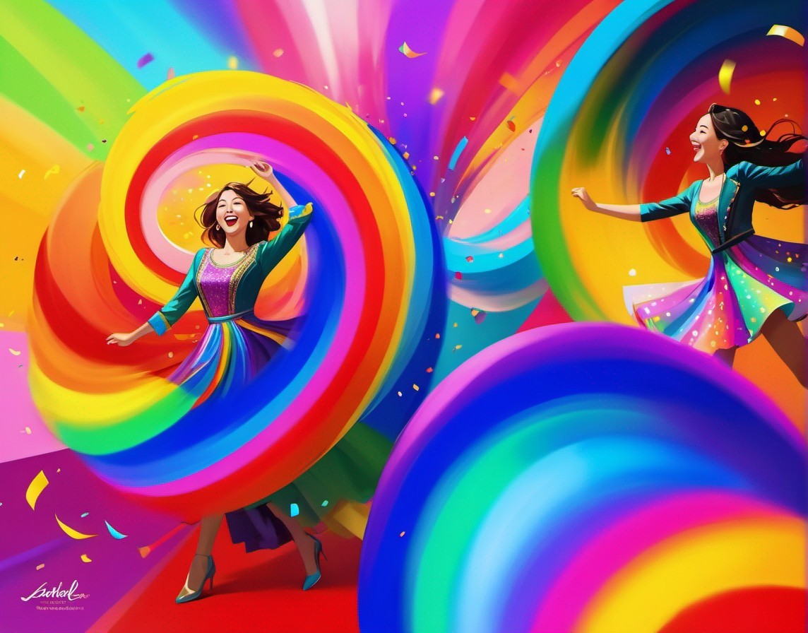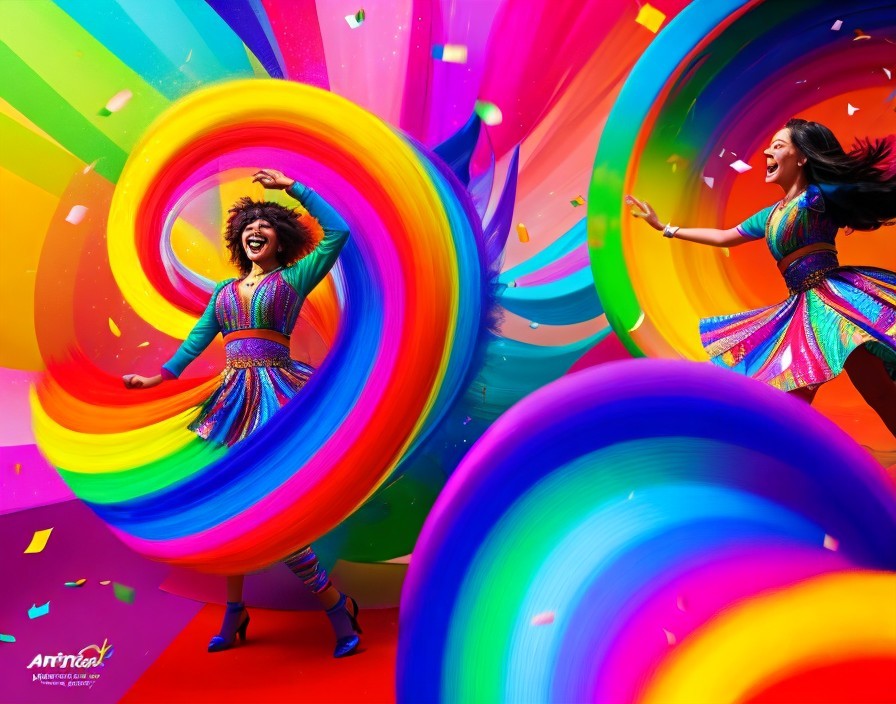 A vibrant illustration of joyful people dancing at a festive event, surrounded by confetti and energy.