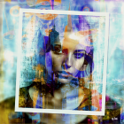 The image features a striking portrait of a woman with a modern, abstract frame. Her captivating expression is enhanced by vibrant colors and fragmented shapes, creating a dynamic visual effect.