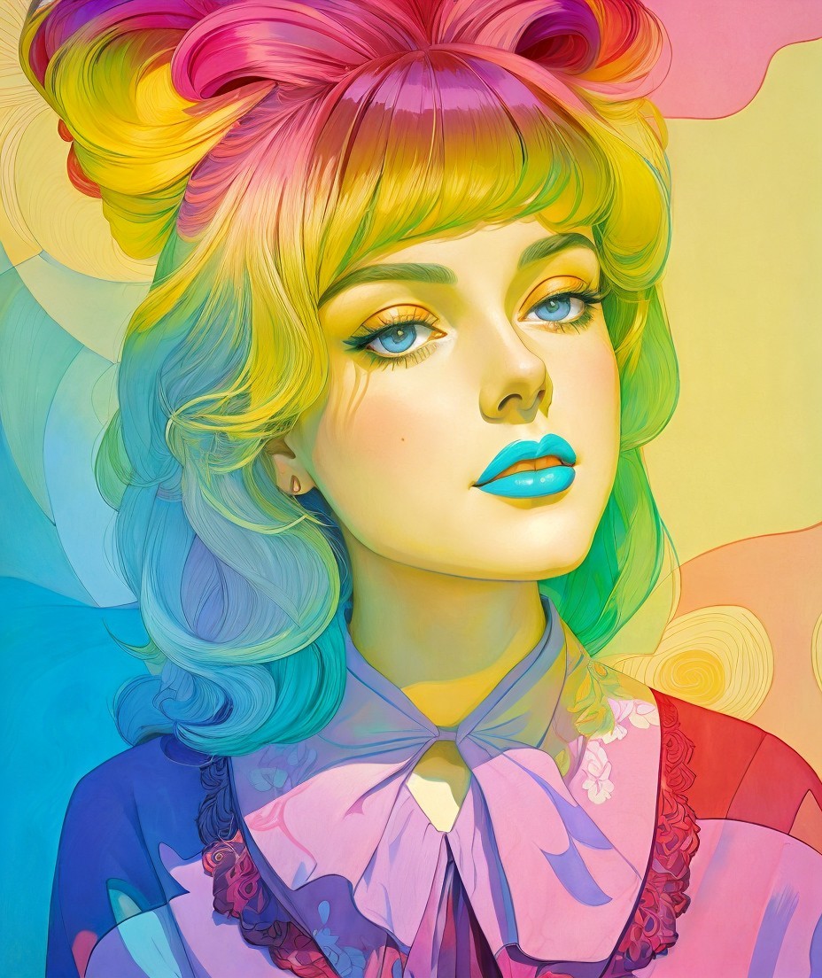 aquarelle, ((style of Margaret Keane and Georgia O'Keeffe and Egon Schiele, vector 9:7), stylized hair, Art Nouveau portraiture,) 9:15) stylized Woodblock print, detailed lineage forms female head, portraiture style of Jessica Rossier and Poul Bech. triadic color scheme pink yellow purple, embossed with lineage, crackles, high coloring 1.9, tints of 1970s advertising art, 3d art, american gothic 1.7, watercolor and ink details, brushed texture. Synthetic essence, back-lit, effects 1.8, splashes, streamline_moderne, anisotropic filtering 1.7, intricate details, shadow mapping 1.8, dynamic lighting 1.7, colorful reflections, vibrant strokes,, radiance, highly detailed ornamental features, abstract style, radiance, plasticity 1.6, complexion, tilt shift, octane render, bright, back-lit, luminous plasticity 1.6, illustrative stylization 1.6, hues, highly chipped peeling, dynamic lighting 1.7, high coloring 1.4, vector 19:12, soft edges, light hues, hues, saturated colors 1.5, geometrical, stacked lines, bold lines, vibrant lineage, smooth lines, intricate details of lineage, raytraced shadows 1.8, sublime, mood, eroticism, brightness 1.9, vaporwave 1.7, tints of Ed binkley, octane render, very detailed illustration, spiritual essence, encaustic lines, volumetric plushy psychpomp, stylized silk dress, detailed ornamental features, luminosity 1.3, transparent iridescent lines in background, dynamic lighting 1.4, anisotropic filtering 1.7