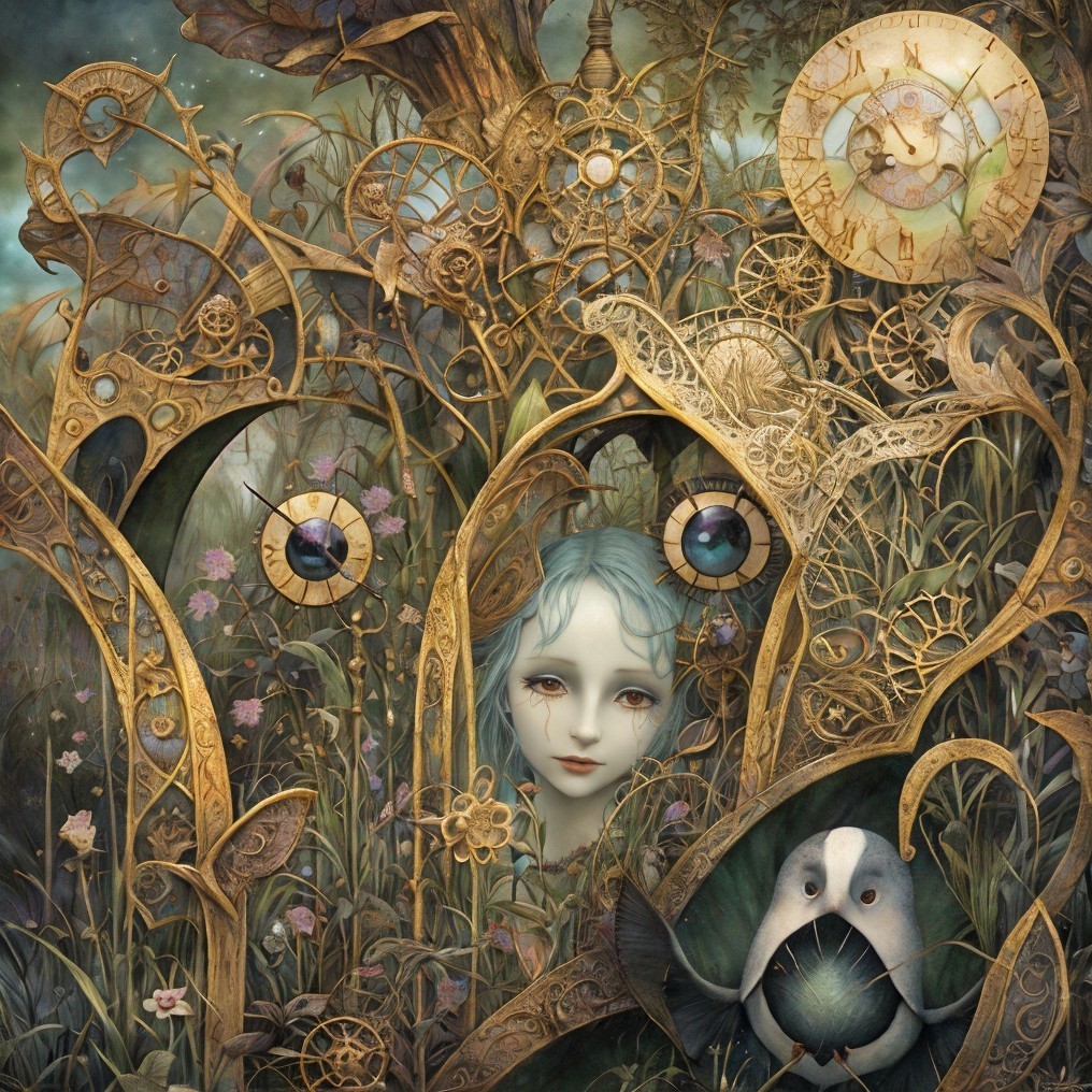 Surreal Figure in a Tranquil Pool Surrounded by Nature