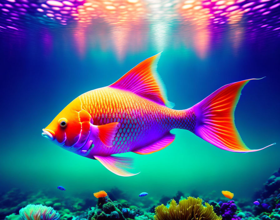 Colorful Orange Fish Swimming in Vibrant Underwater Coral Reef