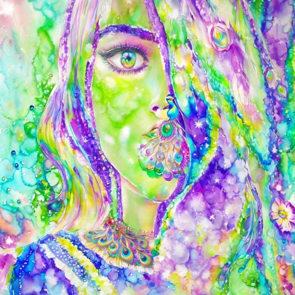 Colorful Watercolor Portrait of Woman with Sparkling Highlights