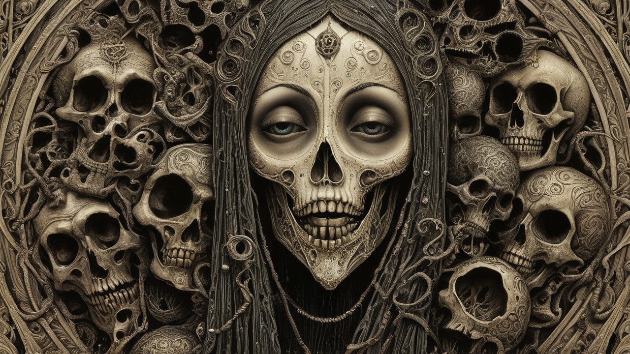Decrepit, Degradation, filth, horror and terror, with a sense of monstrous foreboding. Gothic, liminal and eldritch. surrealist elements in the style of Henry Patrick, Georgia O'Keefe and Naoto Hattori. Ink, pen and oil. Sharp contrast. Labial and vulvic Ensure all significant elements are fully within the boundaries."