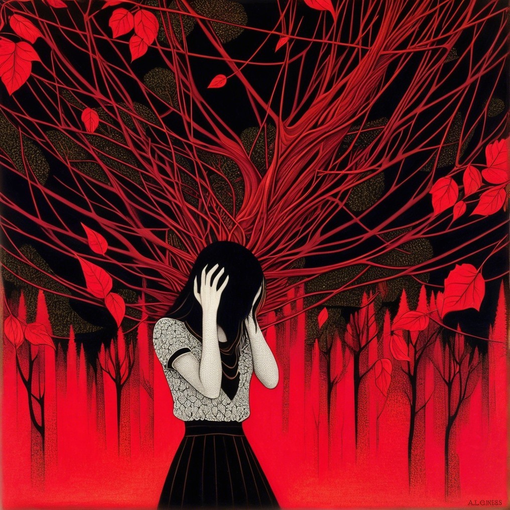 A man embraces a heart-shaped tree during sunset, surrounded by vibrant autumn leaves. The warm colors evoke a sense of connection and harmony with nature.