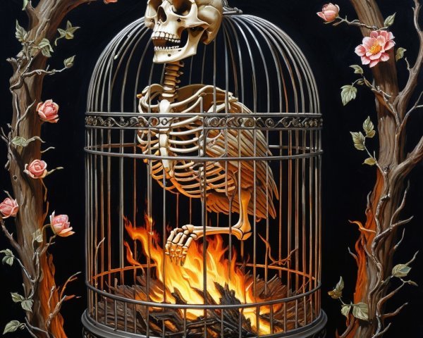 Abstract colorful painting featuring geometric shapes resembling mountains under a night sky with a moon.