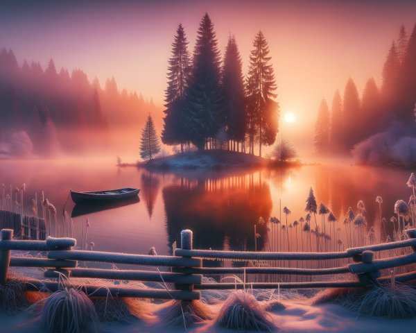A vintage car glides along a misty forest road, surrounded by tall trees. The classic design features a black top and gleaming chrome details, evoking a nostalgic sense of adventure.