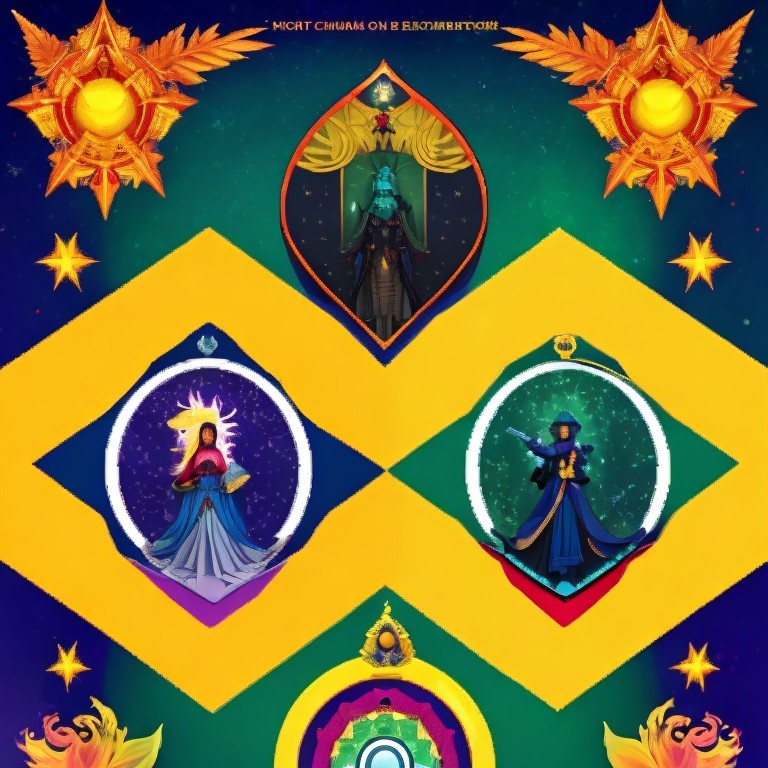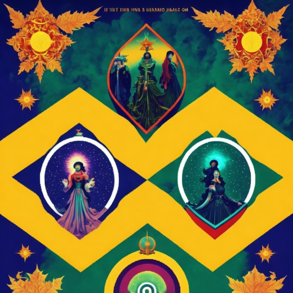 Prompt: kitsch poster of the Five Seasons: Chaos, Discord, Confusion, Bureaucracy, and The Aftermath. Hail Eris! All hail Discordia! #fnord #elektrodada