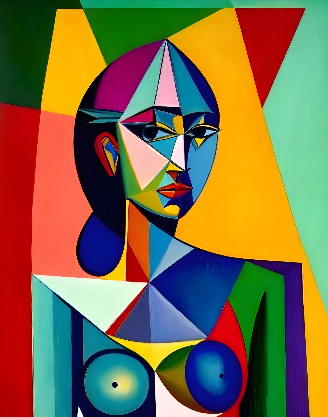 Colorful Cubist Painting of Female Figure