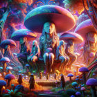 In a surreal landscape, a figure with a blank white mask beckons you to enter the forest, he stands on twisted branches. An ethereal moon looms behind, casting a mystical glow over the scene.
