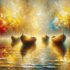 An atmospheric, painterly, Christmas card-like illustration of a snow-covered town at twilight under a full moon, with colorful birds flying above and perched on snowbanks, with snow-covered trees.