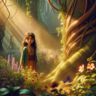 Dream Forge! Garden gate. A rustic wooden gate opens to a sunlit path flanked by lush flowers and weathered fence, exuding a serene ambiance. Perfect imagery of beautiful girl on the path in the garden. “When I went back to our house by the sea the garden was overgrown with weeds and the currants bushes were almost collapsing with overripe fruits. Nevertheless, I was glad to see it all again. I had the courage to admit that I had been longing to be there all the same, longing for the apple trees, the flowers and the view over the sea” Ensure the overall lighting creates a serene, tranquil atmosphere, with soft reflections and subtle shadows cast by the tree. Bohemian vibe by Otto Quante, aquarelle medium, geometric elements, dreamlike ambience, the interplay of light and shadow, depth in silhouettes, dreamlike, extremely detailed masterpiece, high-resolution 8k, concept art in Unreal Engine 5, photorealistic, professional photography, sharp focus, dreamy quality, attractive lighting, acrylic art by Carrie Ann Baade, Jackson Pollock influence, fantasy elements, dynamic lighting, high-definition 3D, watercolor aesthetics, alcohol ink touches,acrylic art, mixed media, aesthetic beauty, masterpiece,beautiful fantastic view colourful Full Body Image accurate natural colors accurate child's anatomy