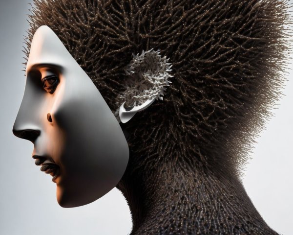 Three ethereal, stylized faces with vibrant hair blend seamlessly into a lush array of orange roses. The warm colors create a dreamy, harmonious atmosphere, evoking a sense of tranquility.