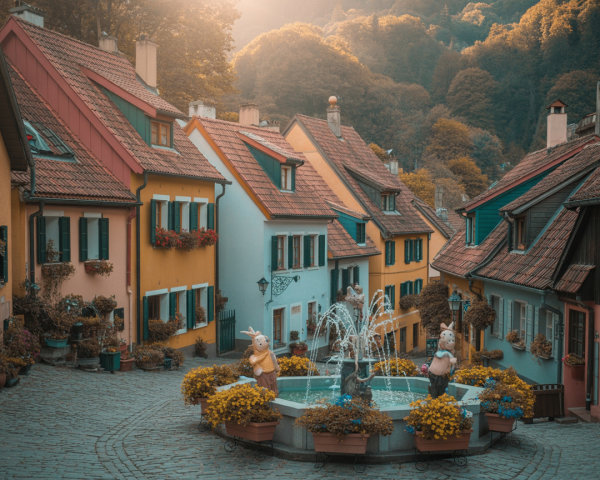 A close-up of a young woman with long, flowing hair, framed by vibrant pink orchids against a bright blue sky. She has soft makeup and a serene expression, exuding beauty and tranquility.