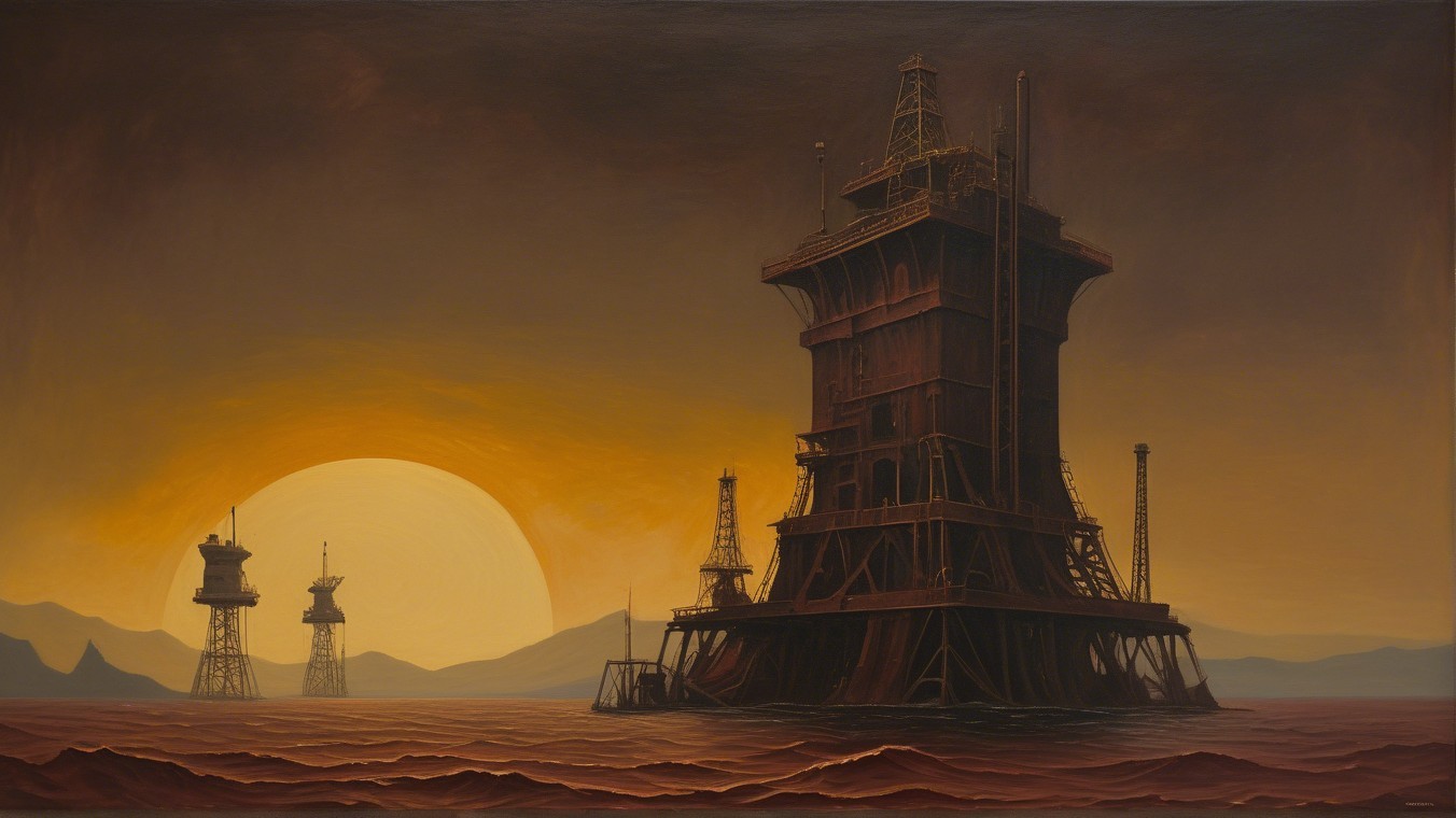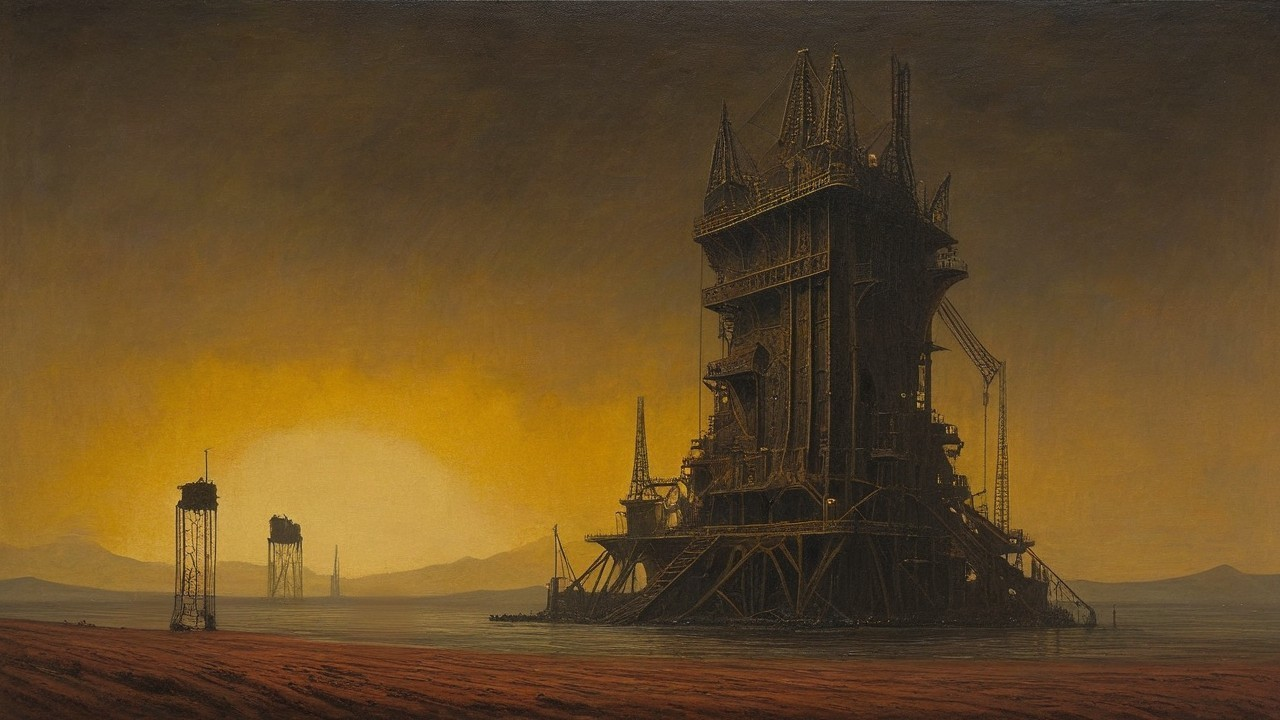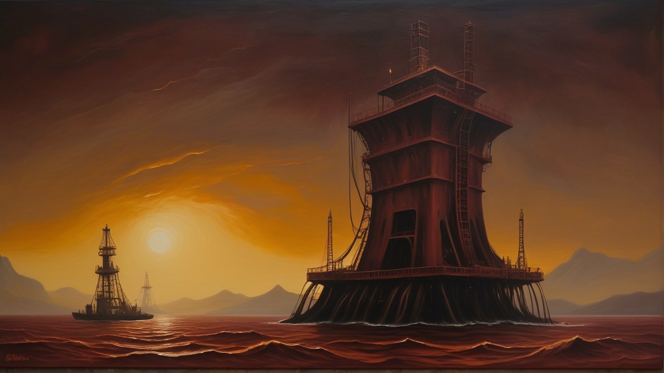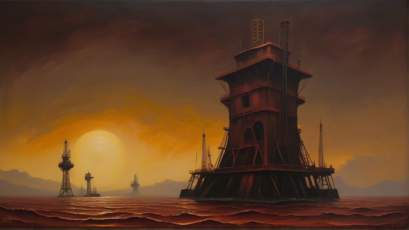 Crimson, brass, ochre and sepia colour palette. Imagine it's literally the bestest painting, as if Satan did it.