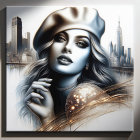 The image features a stylish model in a fashionable outfit, wearing a wide-brimmed hat. Her radiant smile is accentuated by elegant earrings, creating a captivating magazine cover look.