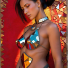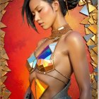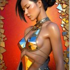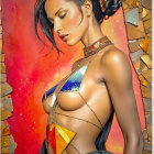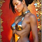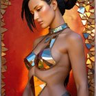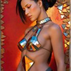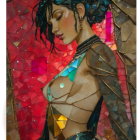 Prompt: Upper body portrait, mosaic entirely composed of small shattered pieces of metal: iron, mica, beads, tinc, bronze, copper and gold, phong shading 1.3, byzantine face type, amaranth-red gradients, patchwork of textiles, multi-layered eyes, raytraced shadows 1.2, texture mapping, plasticity 1.3, embodiment made entirely of shards, blades, flakes, scrapers, burins, slightly surreal, cel-shaded bas-reliefs of fragmented shards and tiles, watercoloring by Man Ray and Pierre Molinier, watercolor and ink style by Galina Alexandrovna Smirnova, wire details, hues, stylized youthful female, Bloom-Effect, subsurface scattering, textured layers, painterly elements, glossy finish, brightness 1.8, plasticity 1.9, dof, debeh, bokeh, HDR, blurred color schemes, watercolor effect, Raytraced shadows, divisionism, sketch art techniques, luminism, sfumato-effect, shadow mapping, parallax occlusion techniquesblurry background, unique, zentangle patterns intertwined, contouring reminiscent of Gustav Klimt, shimmering reflections enhancing details, catenaries, shards, flecks, trashy geometric shapes entwined by Man Ray, warm bluish gradients merging seamlessly, gold, bronze, and earthy tones enriching the palette, ornate and decorative elements adorning the composition, soft and warm lighting casting gentle shadows, colorful yam, sketch art influence by Richard Serra evident in the linework, hues inspired by Stan Lee's vibrant style, occult theme, mysterious juvenile, liminal, watercolor and ink in fine-line style, diffused and dappled chiaroscuro lighting, dystopian, cel-shaded style, Henri de Toulouse-Lautrec influence,