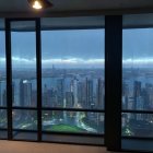 Modern Living Room with City Skyline and Aquarium