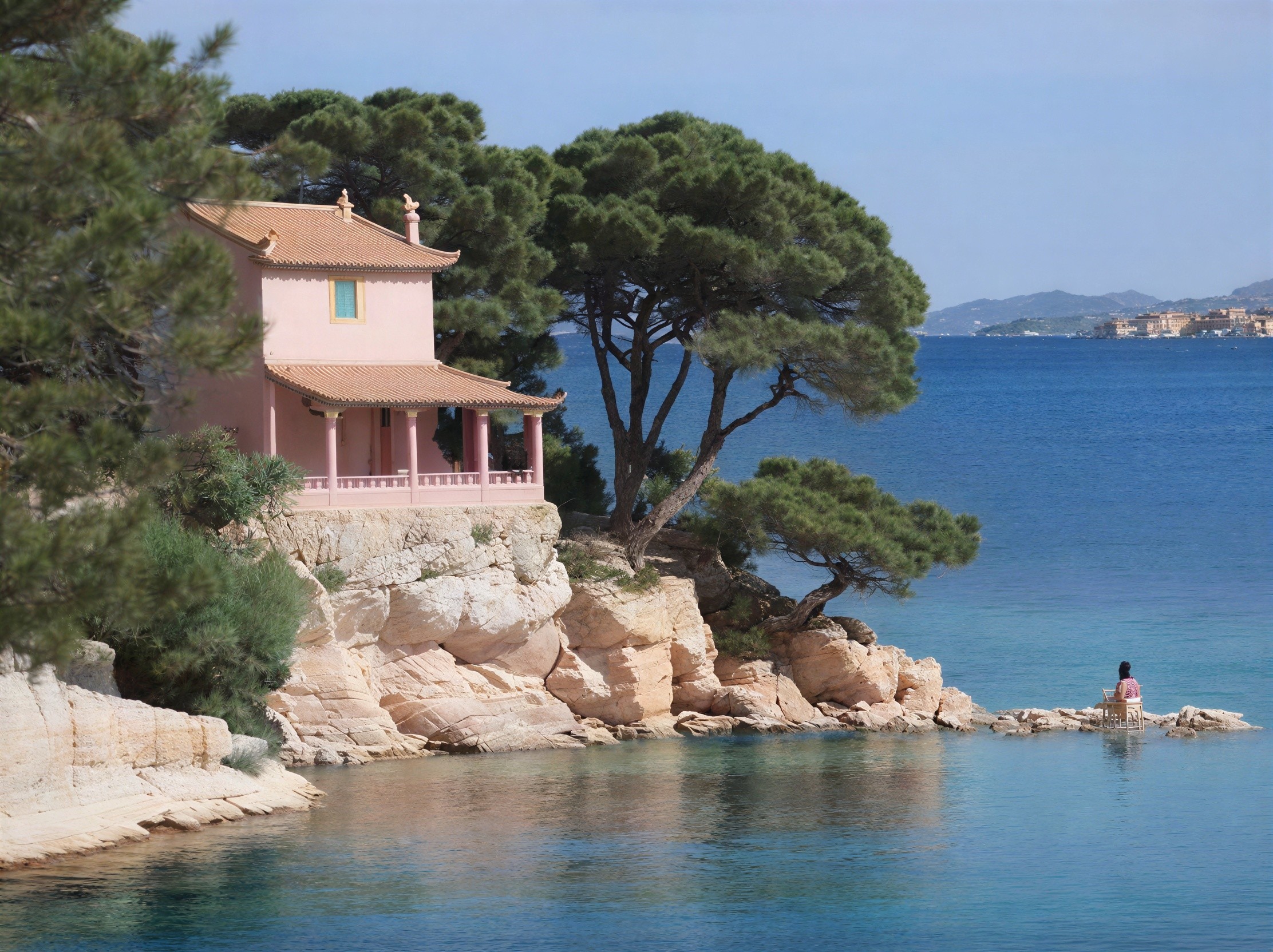 Prompt: A delicate, atmospheric Chinese watercolour scene rendered in a loose, flowing style, where warm pigments blur and blend to create a golden, dream-soaked world. In the foreground, a woman sits quietly at the edge of a lake, her bare feet dangling above the mirror-flat surface of a still lake. One or two slender reeds pierce the water’s glassy calm, sending faint ripples outward. Overhead, a weeping willow branch arches into the frame, its delicate green leaves stand out against the hazy sky. The woman's hair is gently tousled by a barely-there breeze, her light blue dress wraps softly against her skin. The water reflects the fading light and blurred horizon, where soft tones of honey, cream, and lavender melt together in a luminous wash. The entire scene hums with quietude — a gentle pause between moments — evoking the hush of nature at rest, and the still, golden beauty of a fleeting, half-remembered dream.