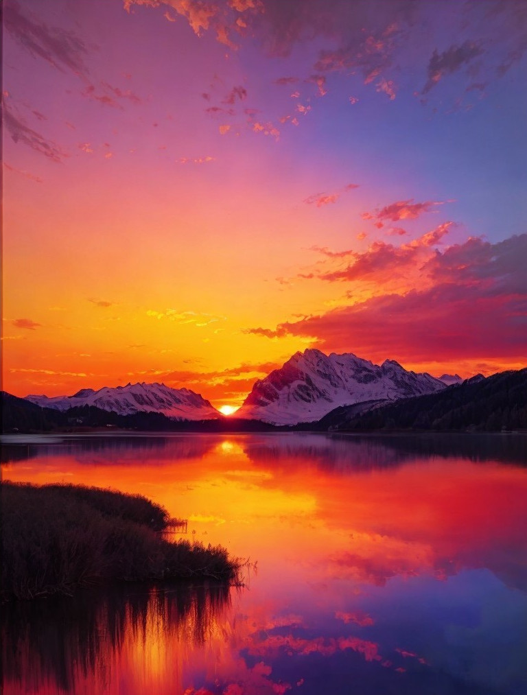 Serene Sunset Landscape with Vibrant Sky and Lake
