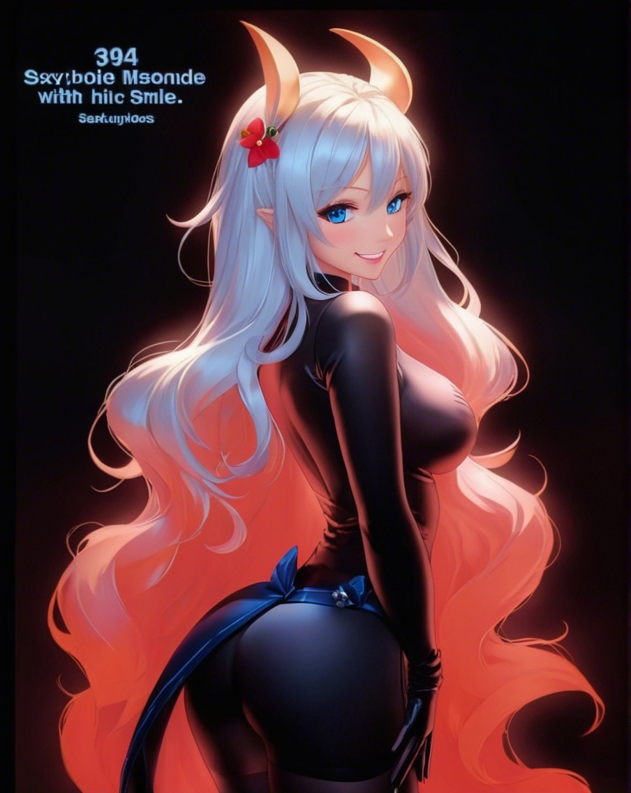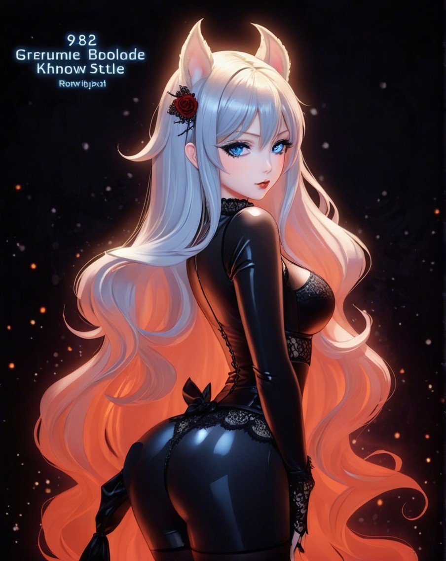 A striking character with long, flowing silver hair and a glamorous outfit featuring a black bodysuit and a flowy pink cape. She has elegant accessories, exuding a mystical and powerful aura.