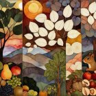 Prompt: Autumn is coming, in iridescent stone texture patchwork, watercolor and ink, imperial colors, vegetable and fruit deco. Art Deco, modern woman, she laugh, Annigoni, Egon Schiele, Botticelli, Catrin Welz-Stein, intricate, elegant, highly detailed, digital painting, concept art, smooth, sharp focus, illustration, debeh
