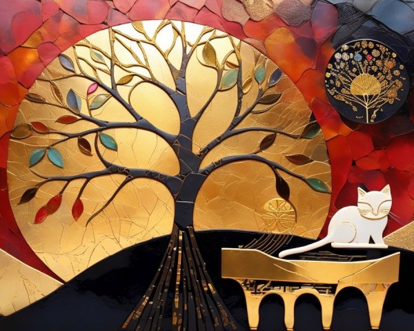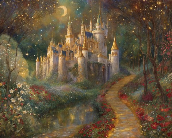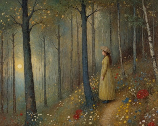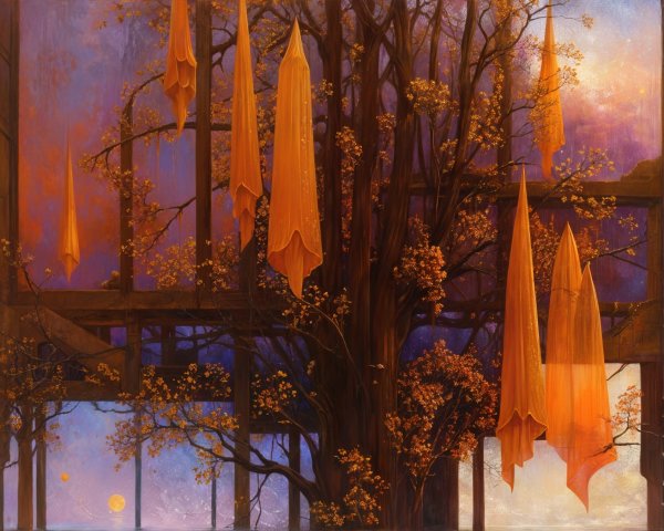 A cozy cottage melded into an ancient tree within a mystical forest, bathed in soft, ethereal sunlight.