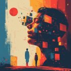This vibrant artwork features a stylized profile of a person against a backdrop of abstract shapes and colors, symbolizing introspection and the fusion of technology and humanity.