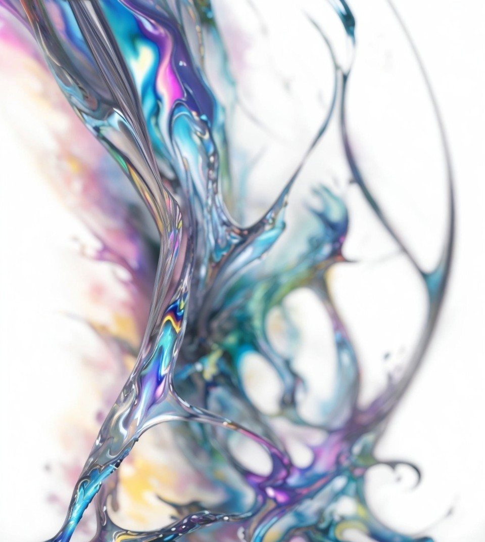 Abstract swirls of iridescent colors blending on a white background, resembling marbled patterns or fluid art.
