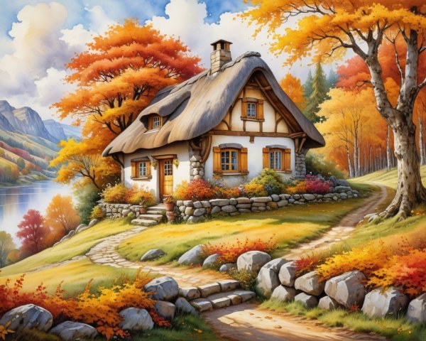 A romantic painting of a couple embracing, surrounded by vibrant flowers and a serene garden backdrop.